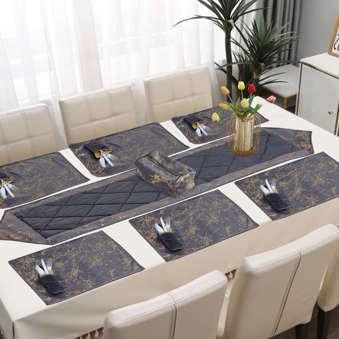 Decorate your table in a delicate way with this elegant table 14 pcs quilted table runner set in Eternity Grey. Perfect for all occasions.