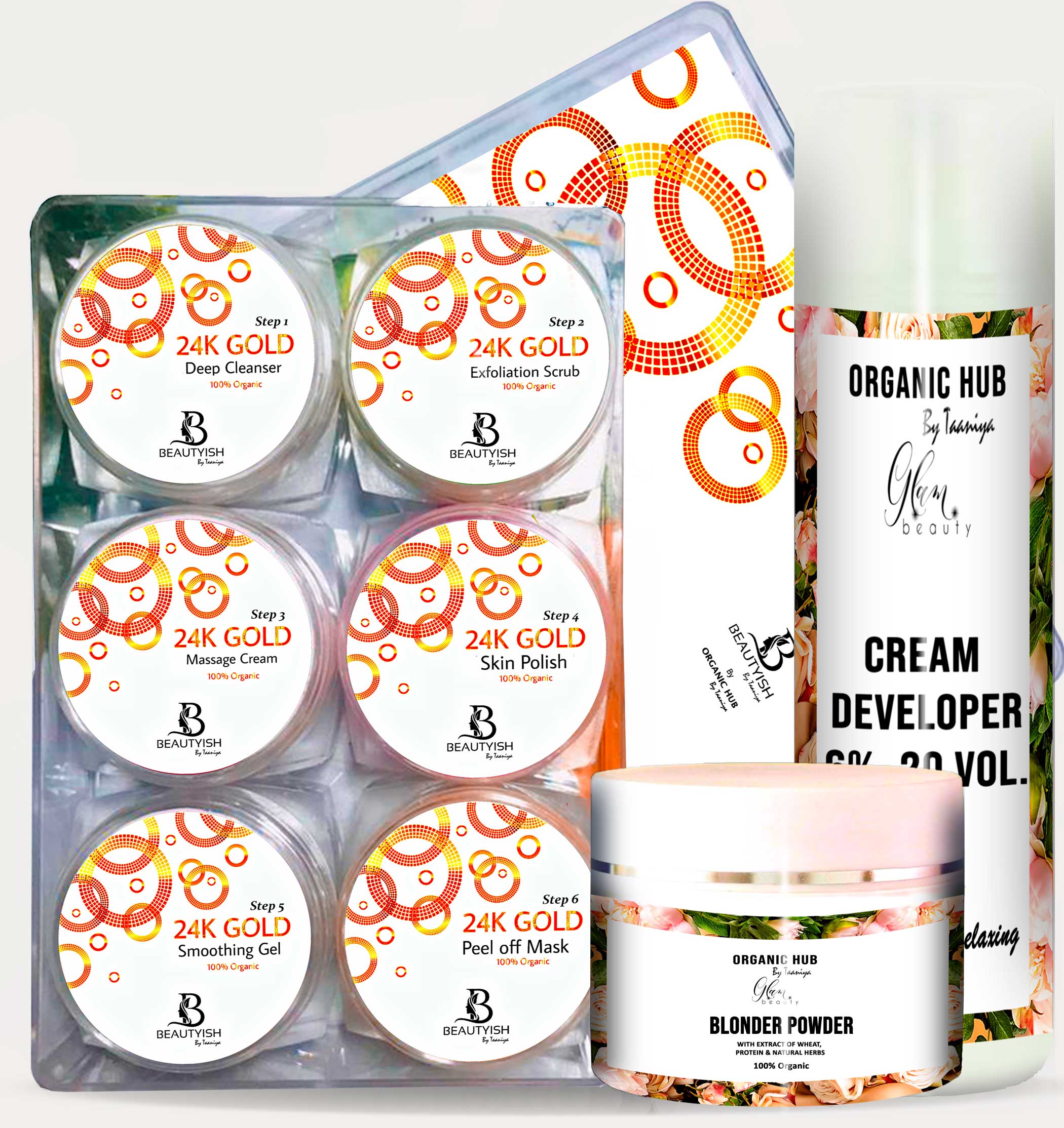 Organic Hub 24K Gold Facial is made with real 24K Gold foils which are best to improve the skin texture, skin tone, redness, dark spots and removes Acne. Buy Best Gold Facial Kit in Pakistan. It increases the blood circulation, makes skin smooth, soft and look younger.