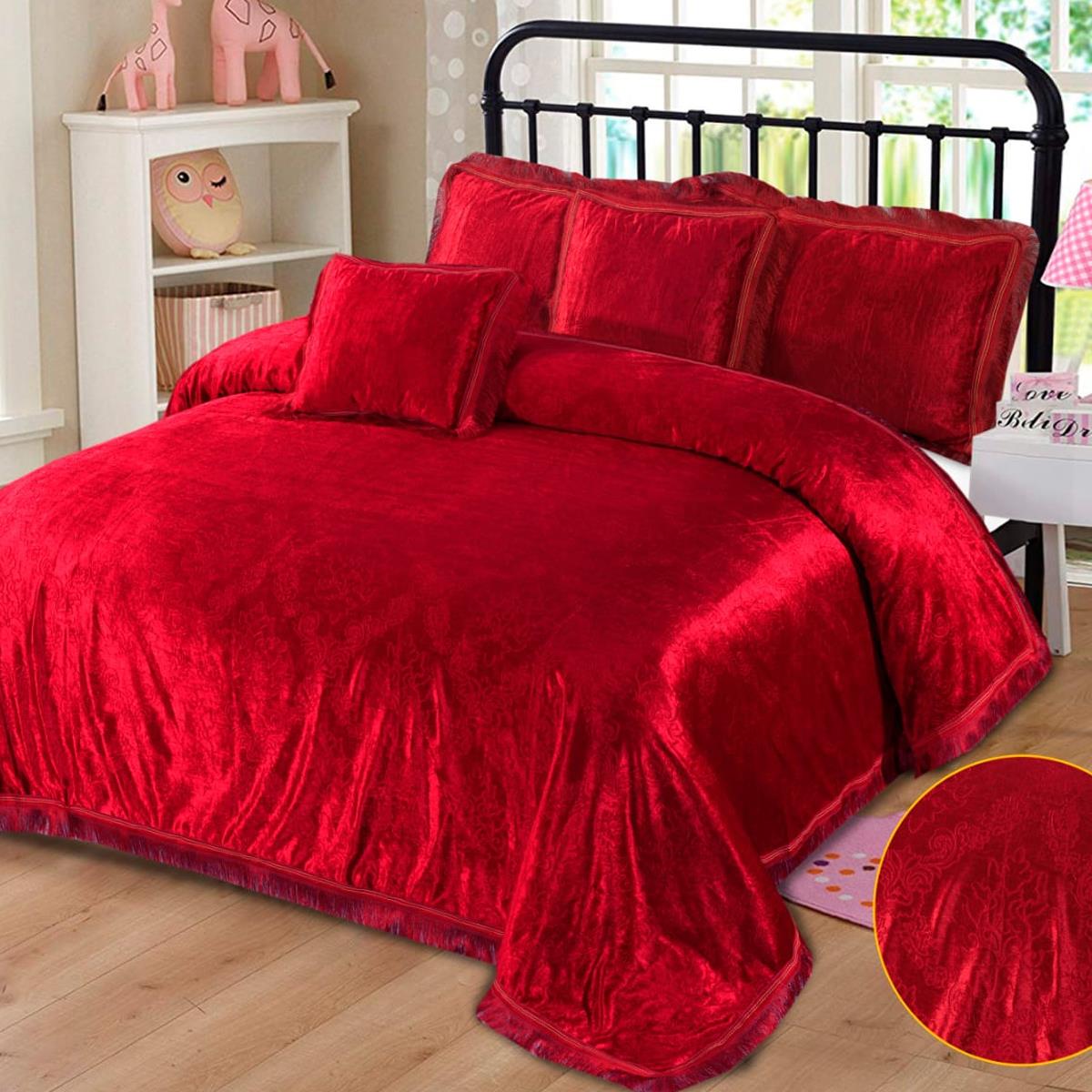 5 Pcs Velvet Embossed Red Bedding Set