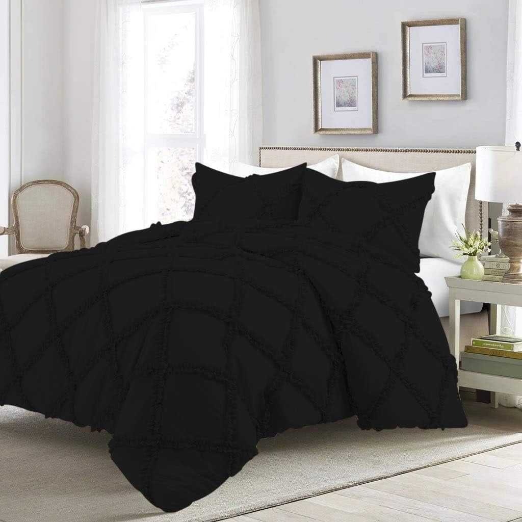 Highly quality Bedding sets in cross ruffled design in black color. Give an elegant touch to your bedroom.