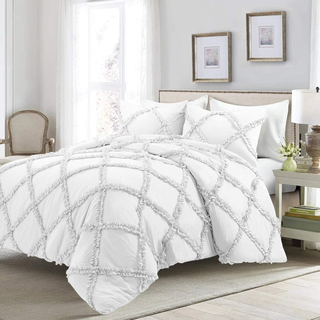 Highly quality Bedding sets in cross ruffled design in white color. Give an elegant touch to your bedroom.