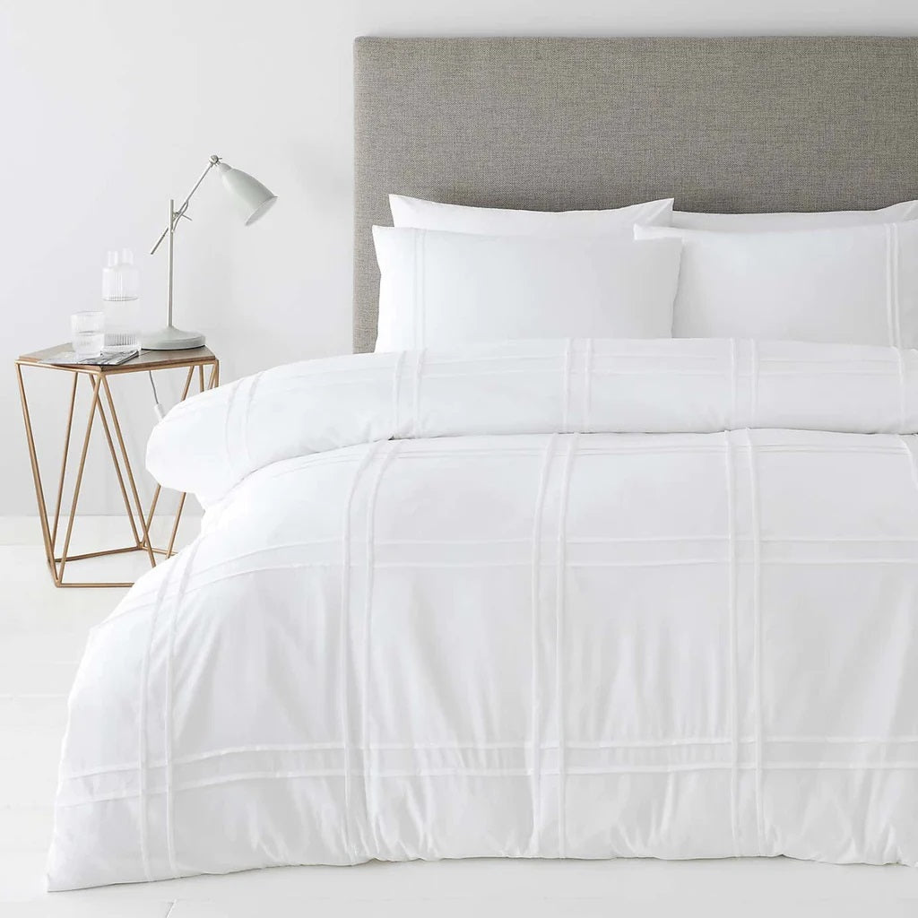 Highly quality Bedding sets in double line pleated design in white color. Give an elegant touch to your bedroom.