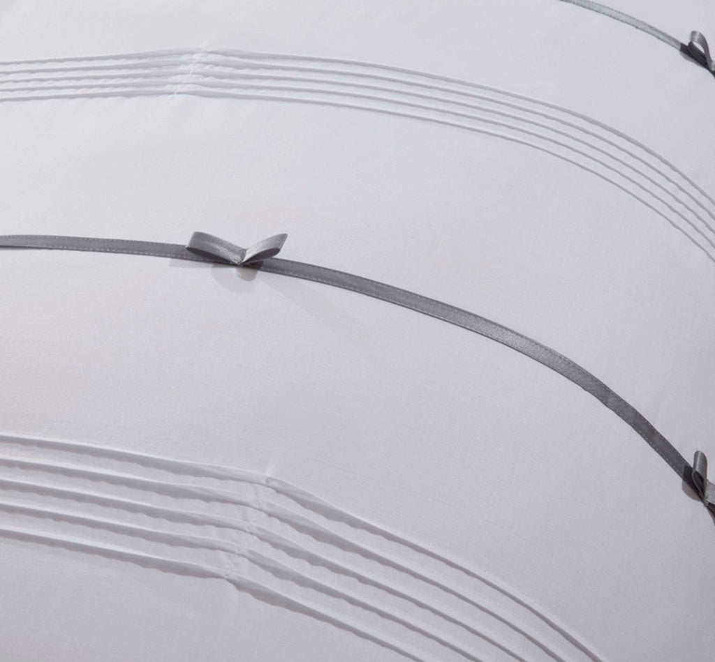 Highly quality Bedding sets in pleated with ribbon bow design in White color. Give an elegant touch to your bedroom.