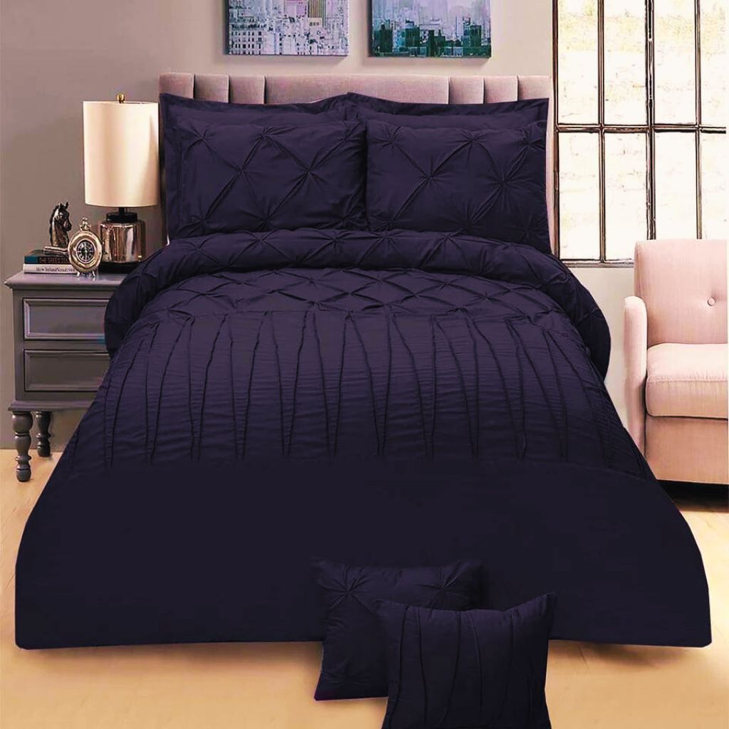 Create a luxury oasis in your bedroom or guest suite with this Livia navy blue 8 Piece duvet cover set. Elegant pinch pleated designing creates a blossom theme. Perfect for anyone with allergies looking to breathe and sleep easy, especially children and the elderly. Transform your room into a relaxing retreat with this beautiful Livia navy blue bedding set.