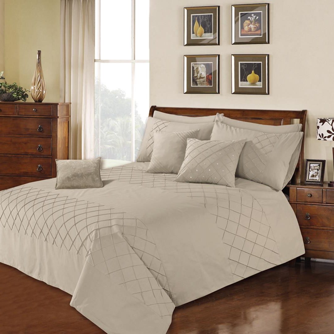Highly quality bedding sets in Pinch Pleat and Plain design in Sand Beige color. Transform your room into a relaxing retreat with this beautiful Pinch Pleat Sand Beige bedding set.