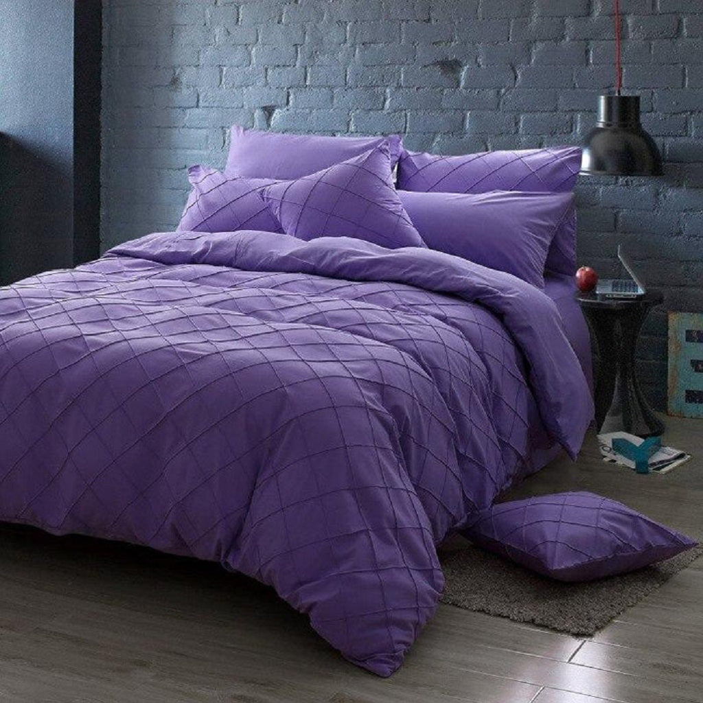 Highly quality bedding sets in Pinch Pleat design in Purple color. Transform your room into a relaxing retreat with this beautiful Pinch Pleat bedding set.