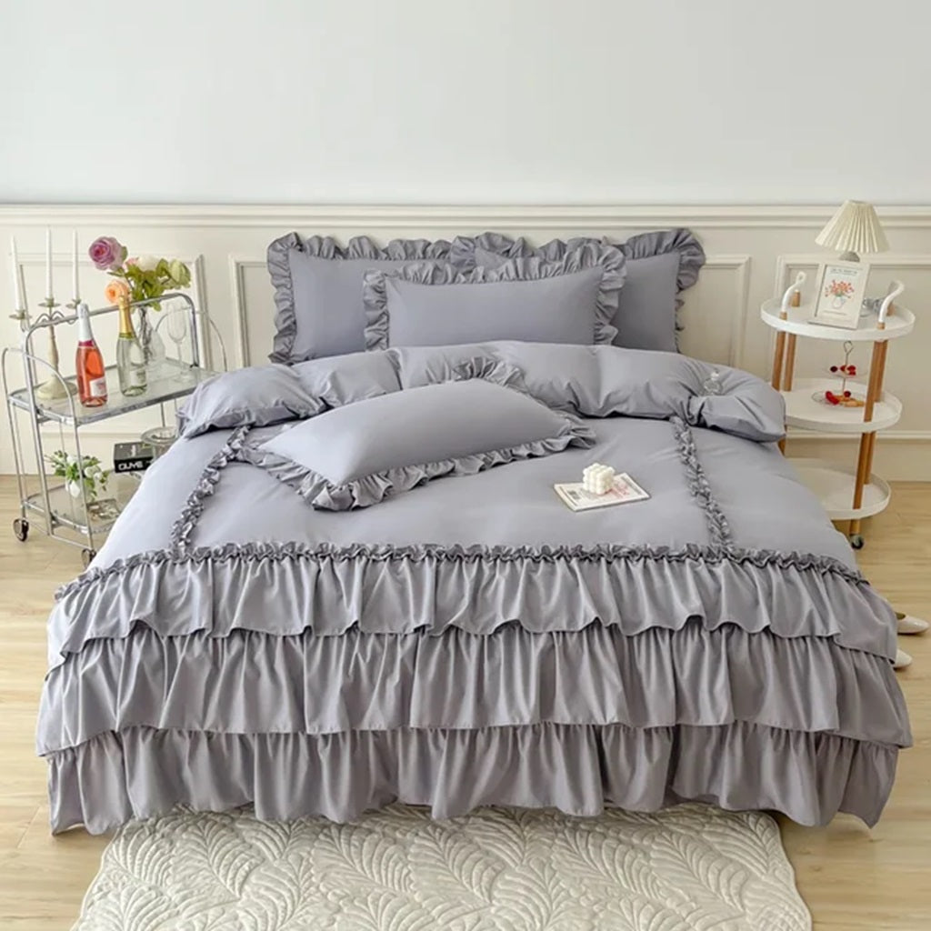 Highly quality Bedding sets in Ruffle design in Grey color. Give an elegant touch to your bedroom.