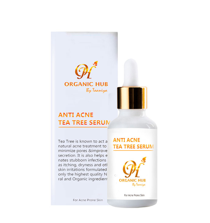 Bring your skin back to baby skin with more balance and sooth Organic Hub Tea Tree Serum for Acne and Pimples Removal. It Smooths the Unhappy Skin. It's Age-defying benefits of Vitamin C, Hyaluronic Acid & Retinol work alongside Tea Tree Essential Oil. It unclog pores, comfort upset skin, and deliver a brighter, healthier looking tone. Shop Organic Hub Tea Tree Serum in Pakistan that is suitable for wider range of skin types. It is great for oily skin type so also for combination or normal skin. Shop Organic Hub Tea Tree Serum which is cruelty free. It does not contain alcohol, artificial fragrance or mineral oils. You can Shop Organic Hub Tea Tree Serum online in Pakistan.
