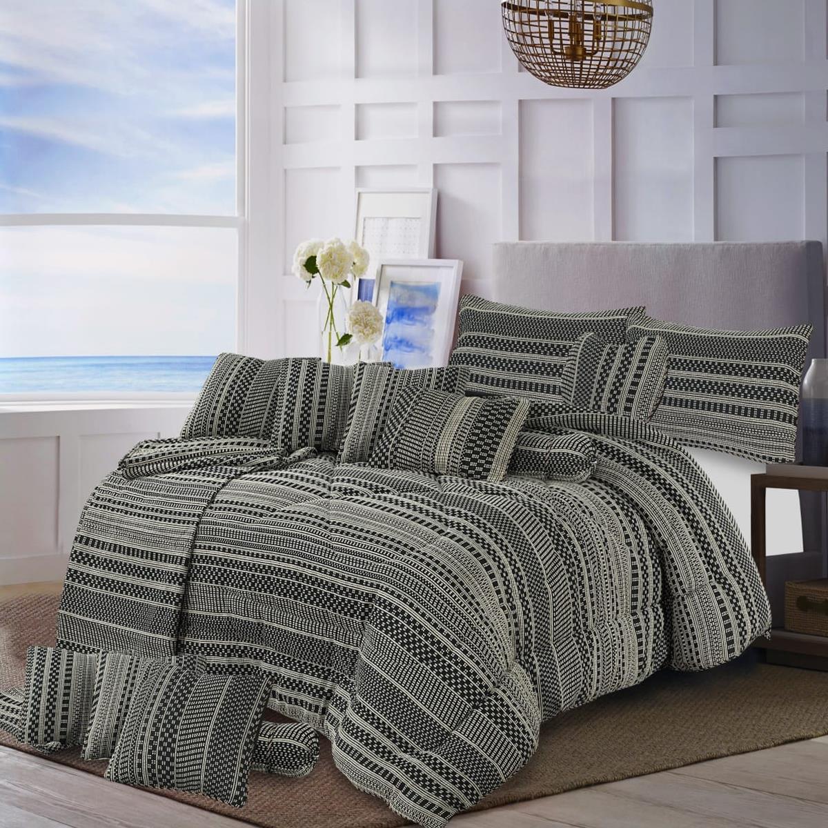 The 14 piece Azeglio cotton jacquard comforter set introduces a taste of contemporary luxury to your bedroom decor. Featuring rich tones and textures accented with unique designs, beautiful colors and amazing texture, this set adds an upscale look to any bedroom. This comforter set blends seamlessly with your bed to create a uniform and inviting look. When you are looking for a gift idea for registries and showers, this 14 piece comforter set is a smart choice.