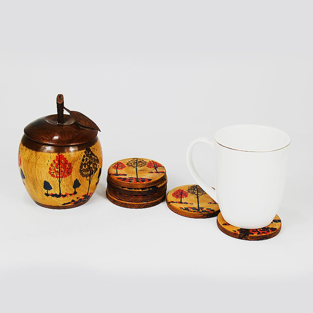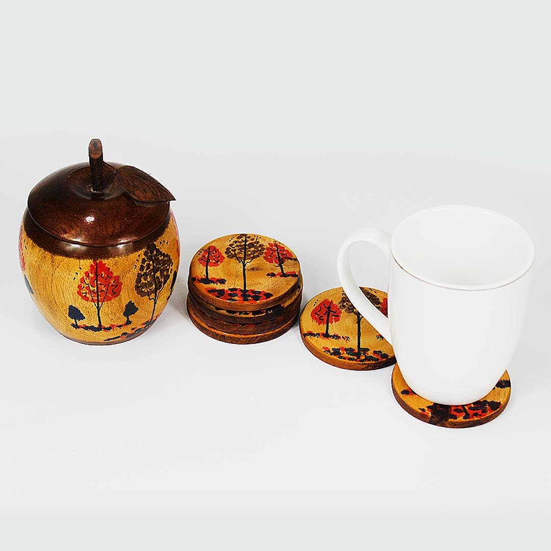 The Chenille wooden sugar pot and coaster have been handcrafted from finest material and brings a touch of decadence to a table. It features an elaborate display of intertwining design. It is best suitable for daily use. One of the best gift for your near ones.