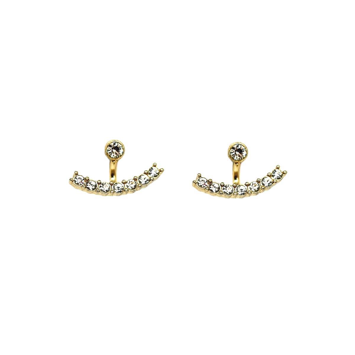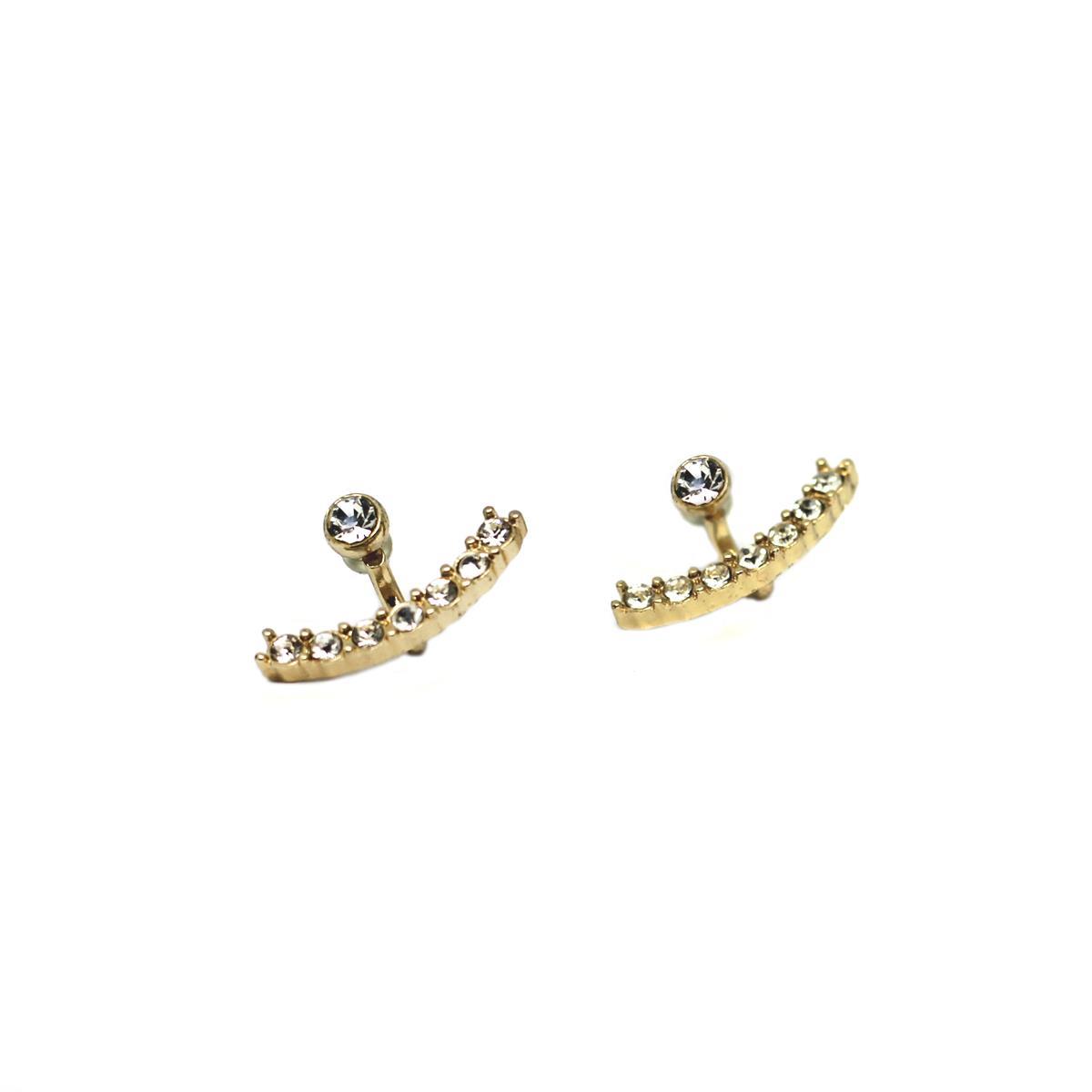 A charming pair of curved bar stud earrings, featuring astonishing curved design and sprinkled with white shiny stone, which makes them more pleasing.