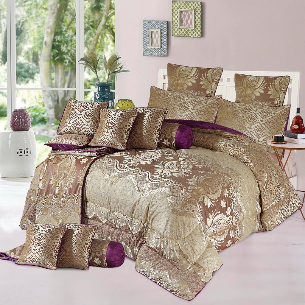 The 14 piece Damask comforter set introduces a taste of contemporary luxury to your bedroom decor. Featuring rich tones and textures accented with unique designs, beautiful colors and amazing texture, this set adds an upscale look to any bedroom. This comforter and pillow set blends seamlessly with your bed to create a uniform and inviting look. When you are looking for a gift idea for registries and showers, this 14 piece comforter set is a smart choice.