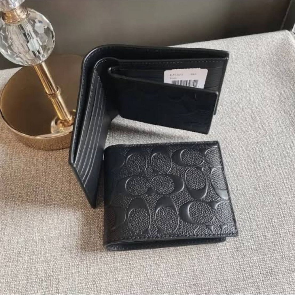 Keep your cash and cards organized with this fashionable wallet. Coach billfold wallet is very complete wallet and can therefore hold currency and credit cards. Mirror Copy and crafted with premium quality leather to resist daily wear and tear. Compartments has ample space that allows you to keep cards and cash organised.