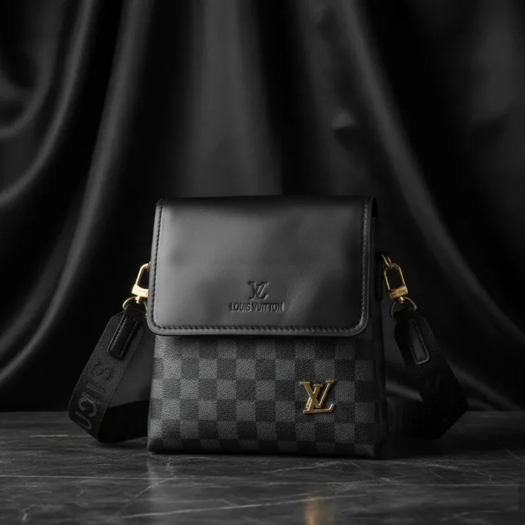 Designer LV Leather Crossbody Bag Black ( Made in Italy )