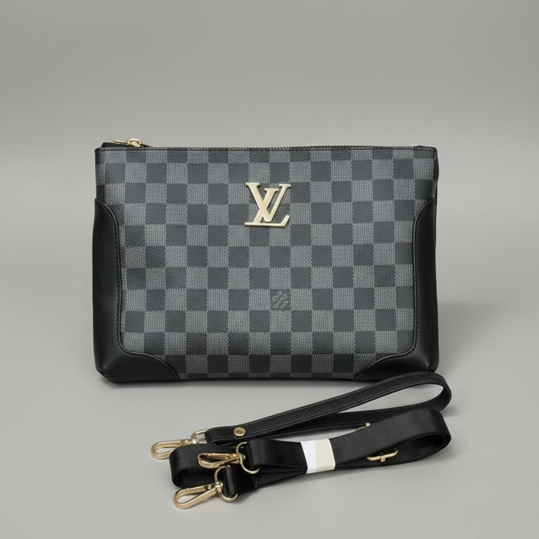 Premium LV Leather Crossbody Bag Black ( Made in Italy )