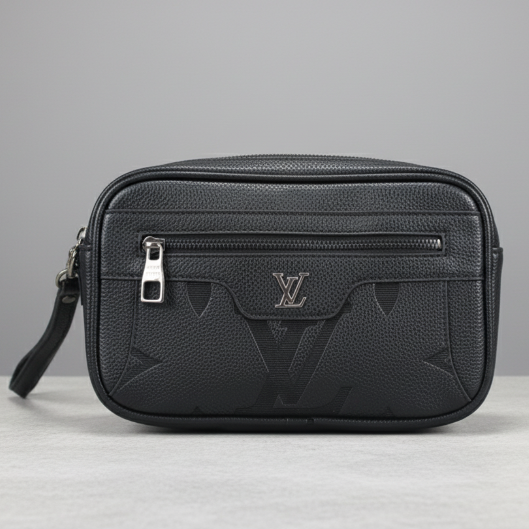 Premium LV Leather Toiletry Pouch Black ( Made In Italy )