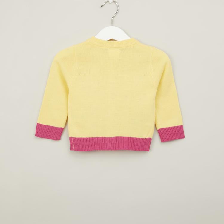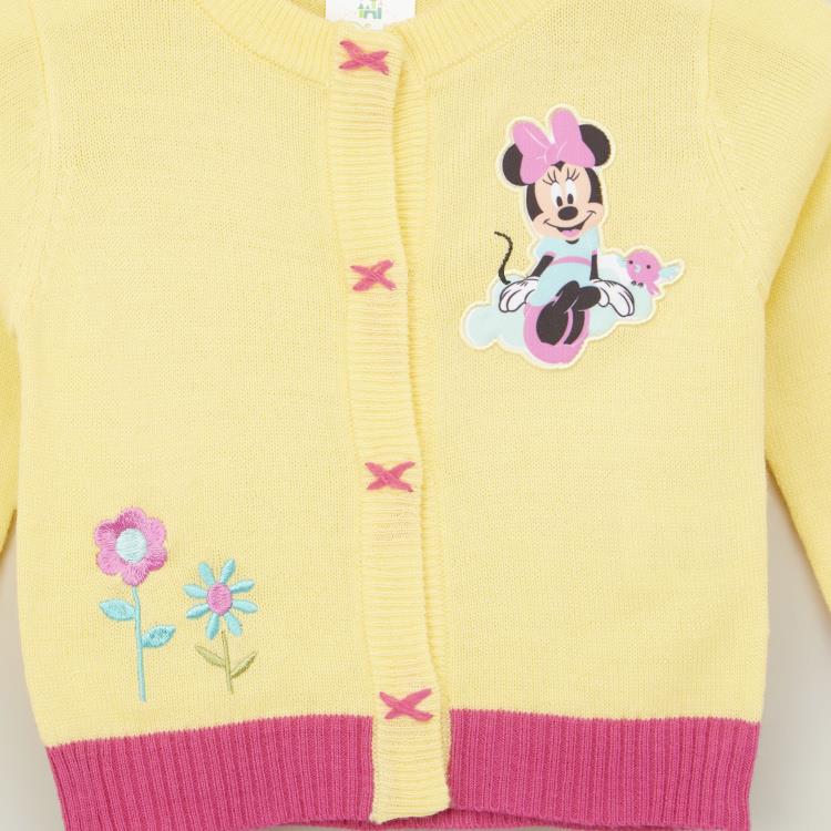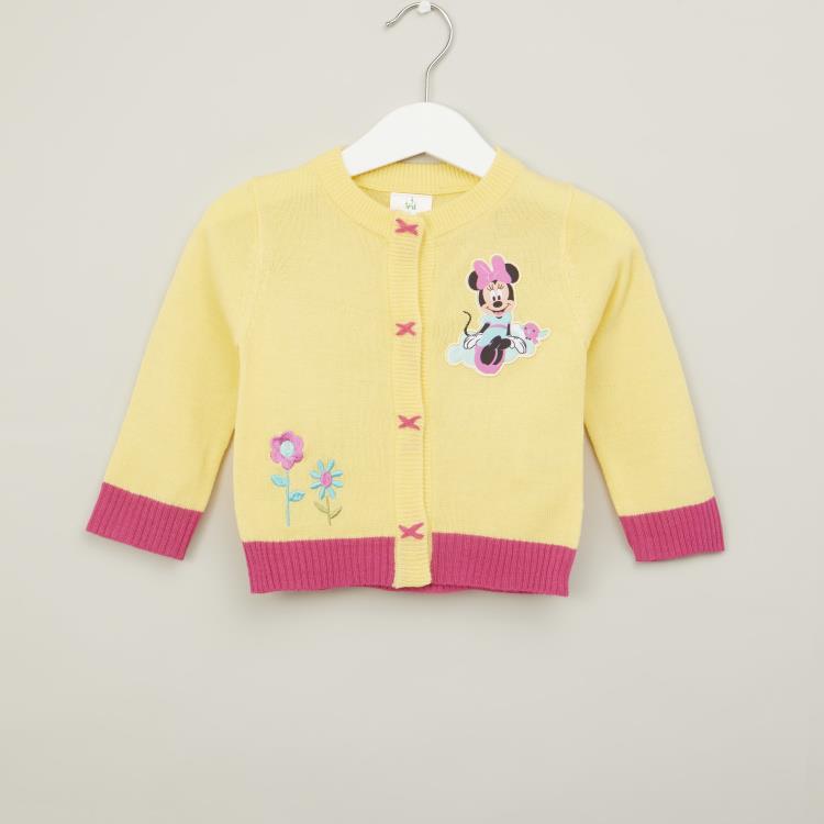 Attractive embroidery of Minnie Mouse and vibrant colour make this sweater a lovely buy for your little girl. This sweater with long sleeves has convenient button closure that promises a good fit along with ease of dressing.