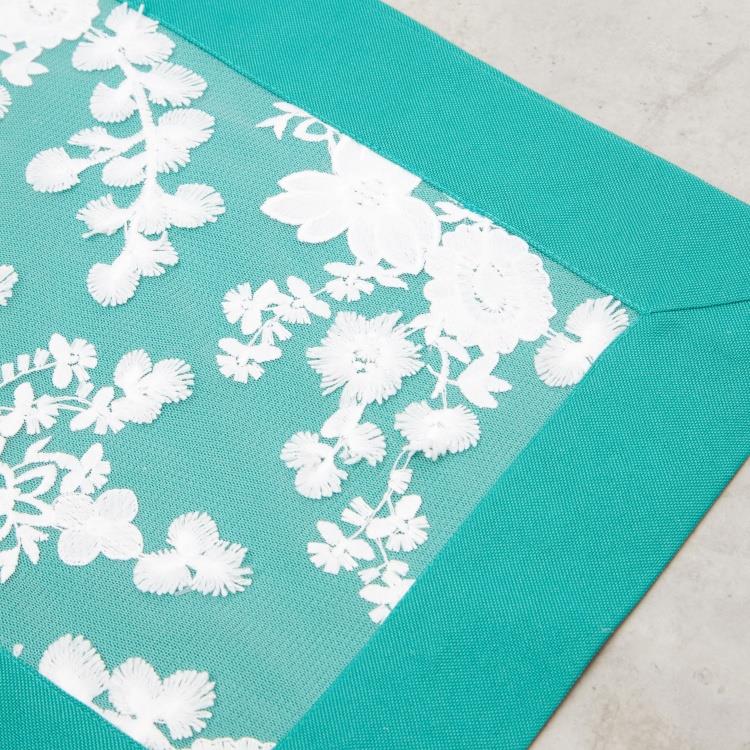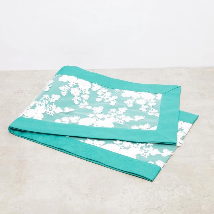 Impress your loved ones with this alluring table runner during the family dinner time. Flaunting an attractive shell-shaped embroidered detail, this rectangular runner is made from polyester and is an apt choice for regular use.