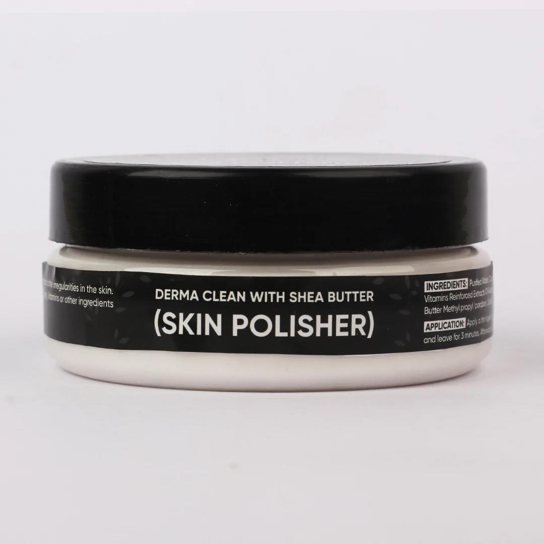 Derma Clean with Shea Butter Skin Polish formula is a state-of-art polishing system blended with glycolic acids & Shea Butter that helps loosen old layer of skin, micro beads to gently polish away dead cells to reveal newer skin, fairness actives to help brighten complexion and emollients to combat dryness