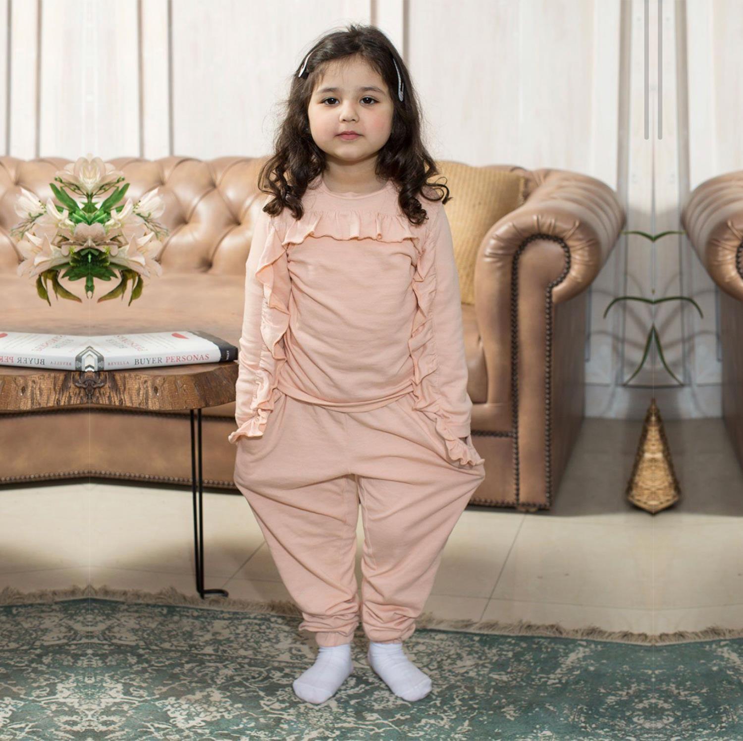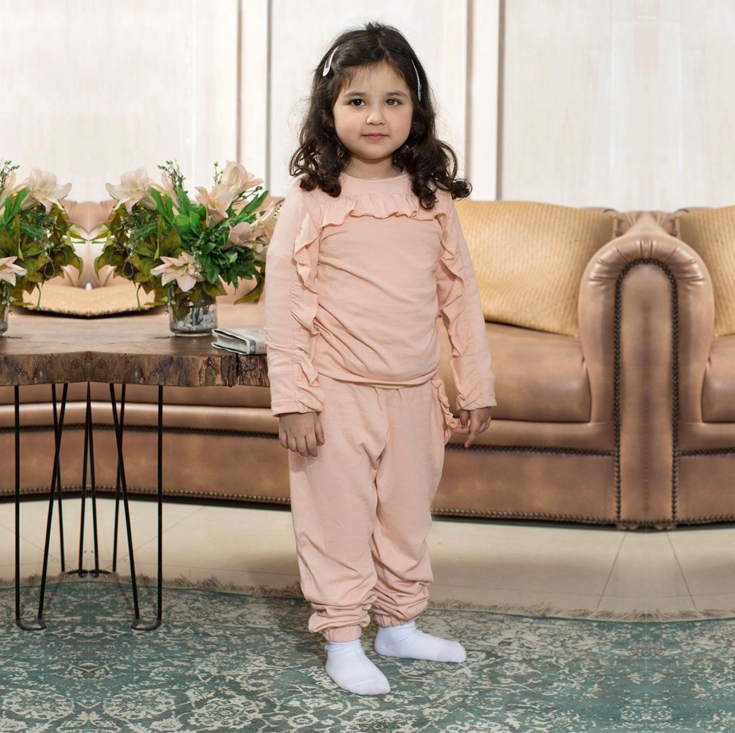 Full Sleeves T-shirt and Trouser Set Frilly Peach