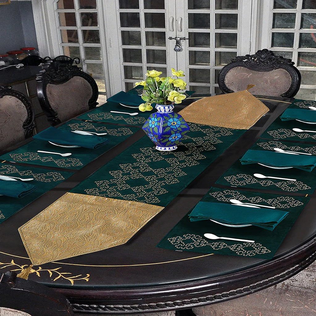 Beautiful gold green embriodered table runner that is very fashionable and impressive. With charming colors to choose from, this table runner is an excellent accent piece for any table. This fun statement piece is sure to add some personality to your dining space!