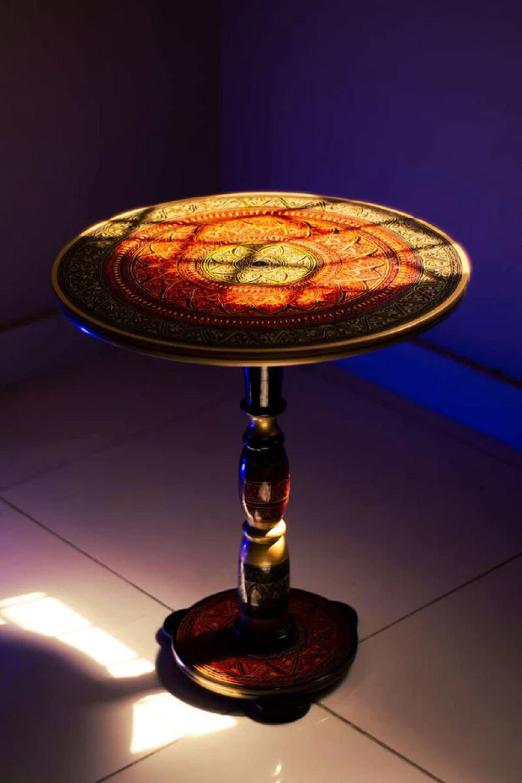 This Handmade table is a stunning piece that combines functionality with elegance. Its sleek design features a lacquered surface, offering a glossy and durable finish. With its spacious tabletop and sturdy construction, this table is perfect for both practical use and as a captivating centerpiece in any room.