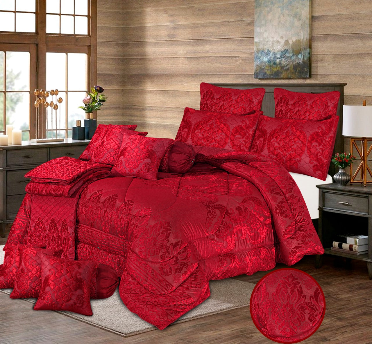 The 14 piece Holton comforter set introduces a taste of contemporary luxury to your bedroom decor. Featuring rich tones and textures accented with unique designs, beautiful colors and amazing texture, this set adds an upscale look to any bedroom. This comforter set blends seamlessly with your bed to create a uniform and inviting look. When you are looking for a gift idea for registries and showers, this 14 piece comforter set is a smart choice.