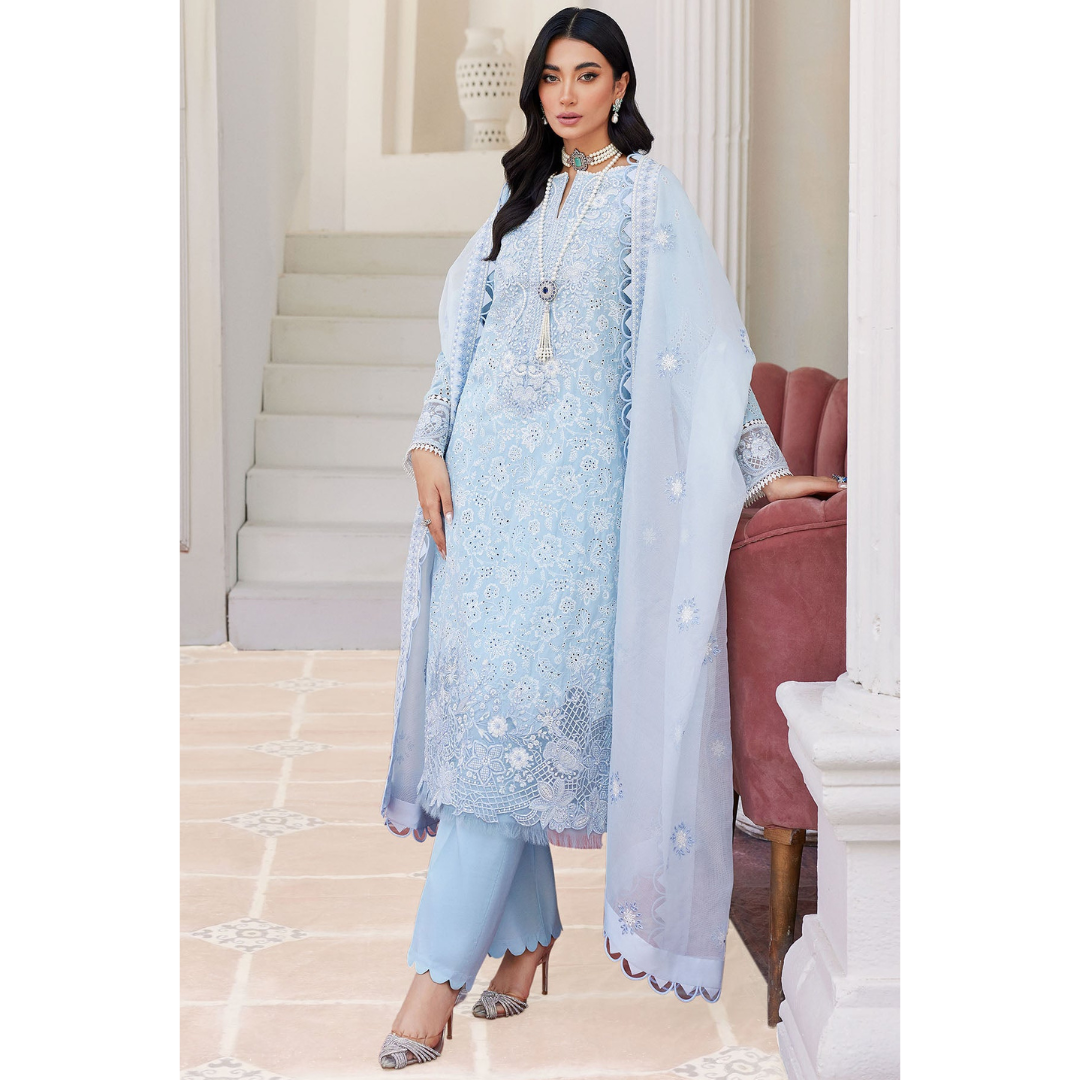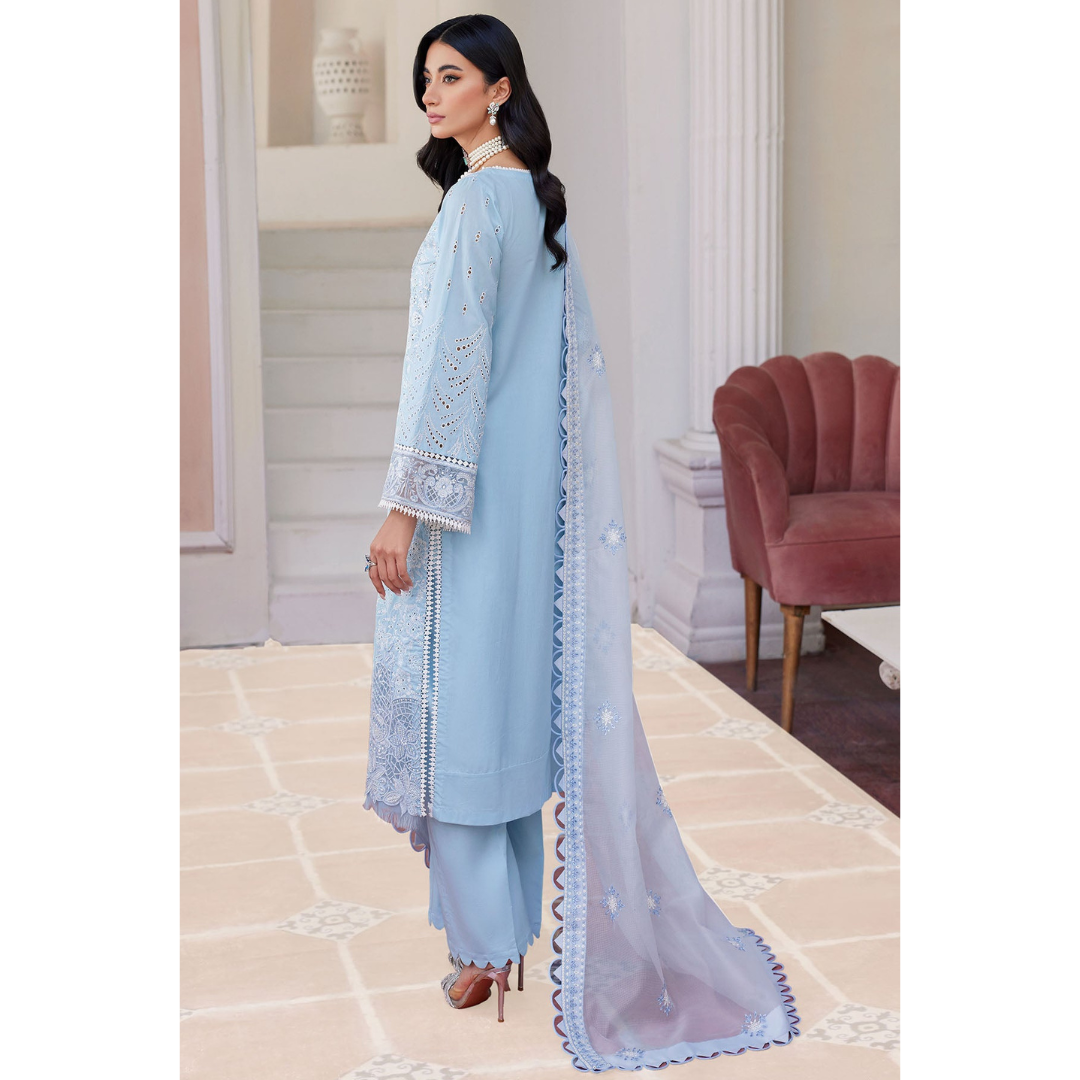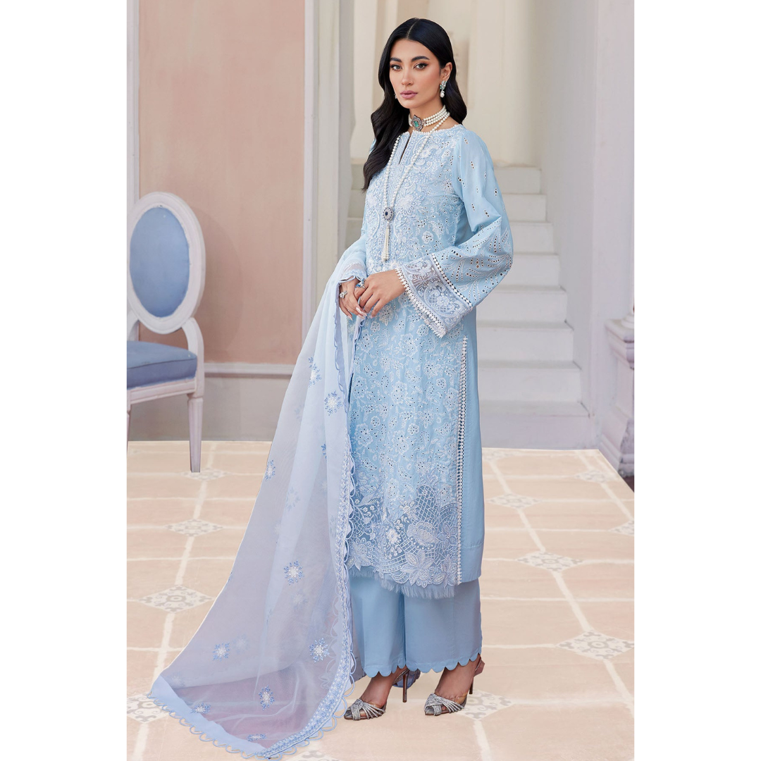 Laila Unstitched Embroided Lawn Suit Ice Blue