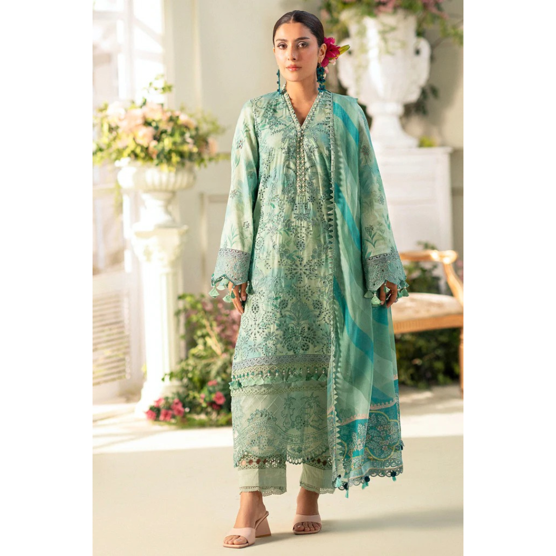 Laila Unstitched Embroided Lawn Suit Sea Green