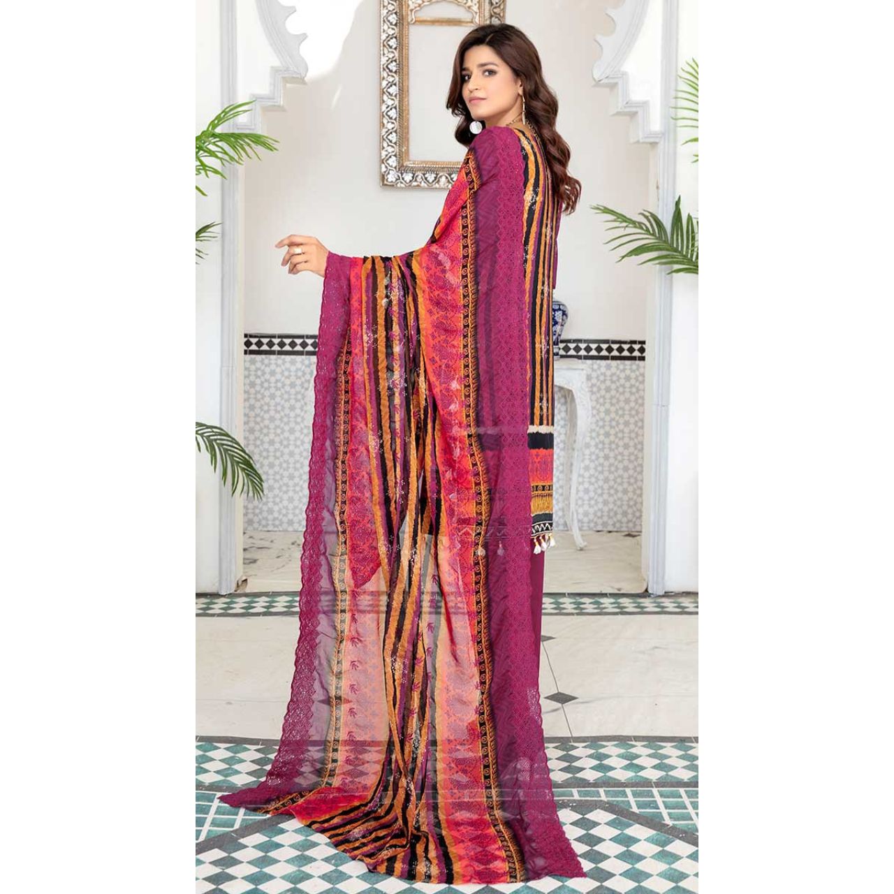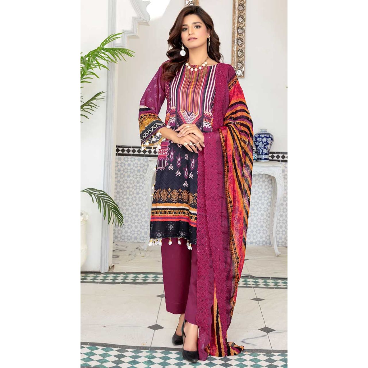 Mashaal 3 Pcs Unstitched Embroidered Lawn Suit Maroon