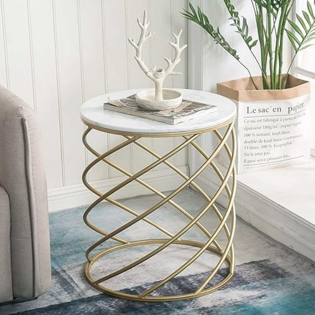 A modern and elegant piece combining a high-gloss marble-effect surface with a bold geometric frame. The hexagonal design adds a sculptural quality, while the metallic base enhances both style and stability. Perfect for contemporary interiors, this versatile piece balances function with aesthetic appeal.