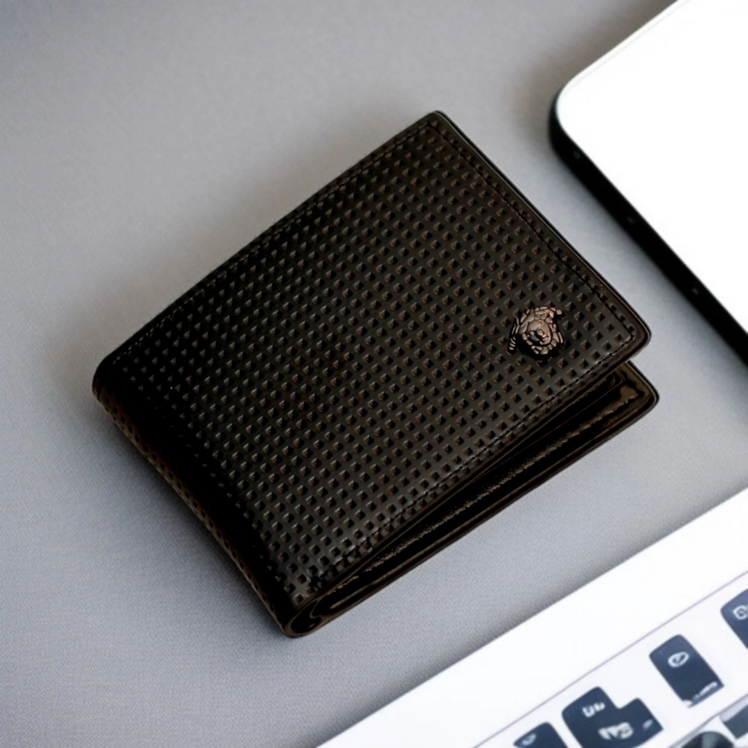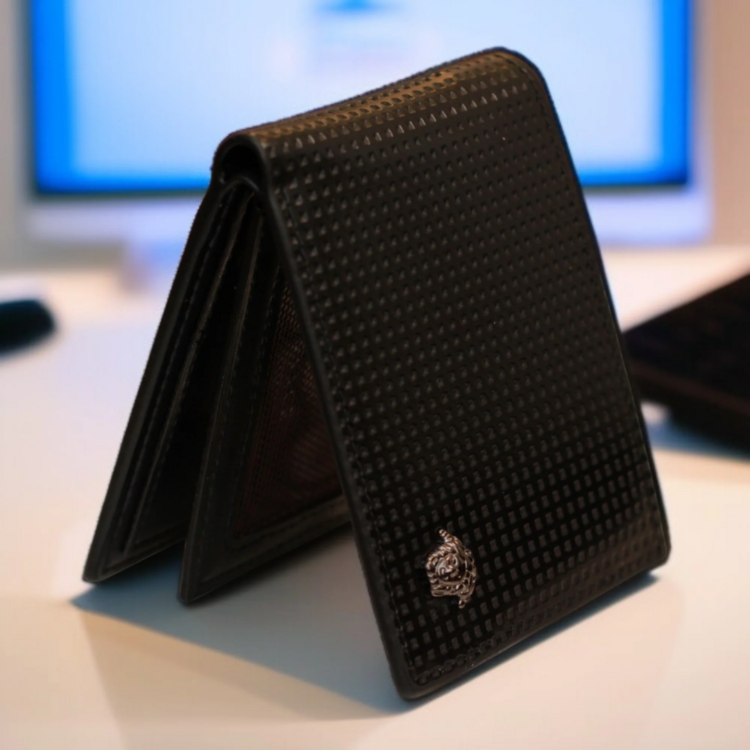 Keep your cash and cards organized with this fashionable wallet. This billfold wallet is very complete wallet and can therefore hold currency and credit cards. Mirror Copy and crafted with premium quality leather to resist daily wear and tear. Compartments has ample space that allows you to keep cards and cash organised.