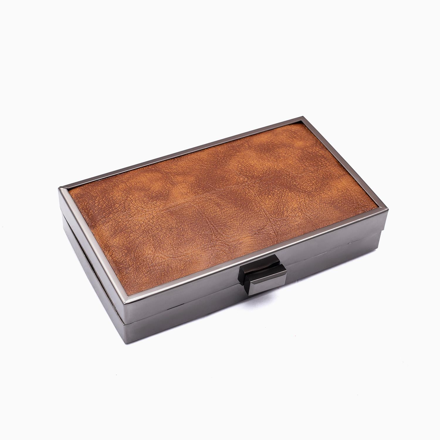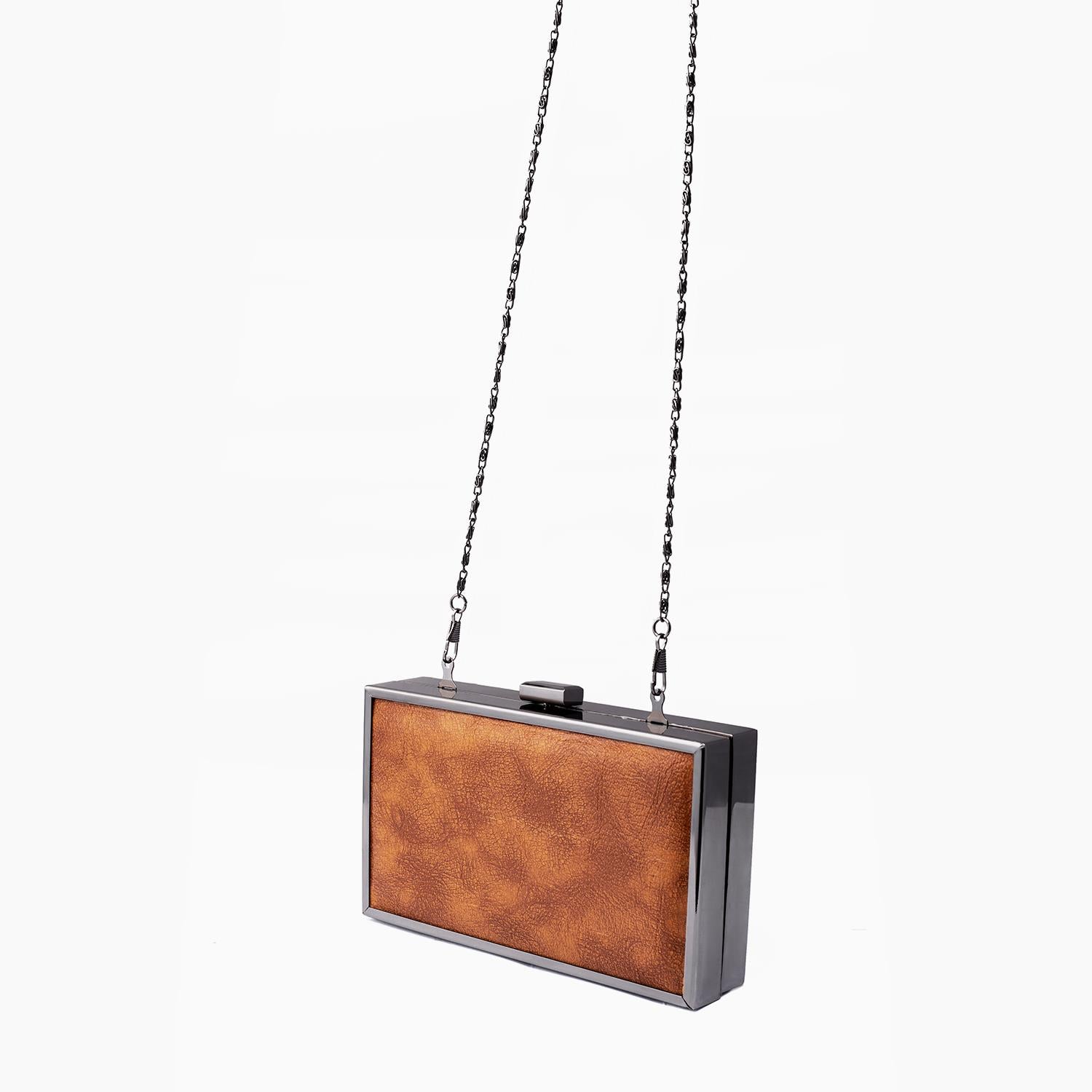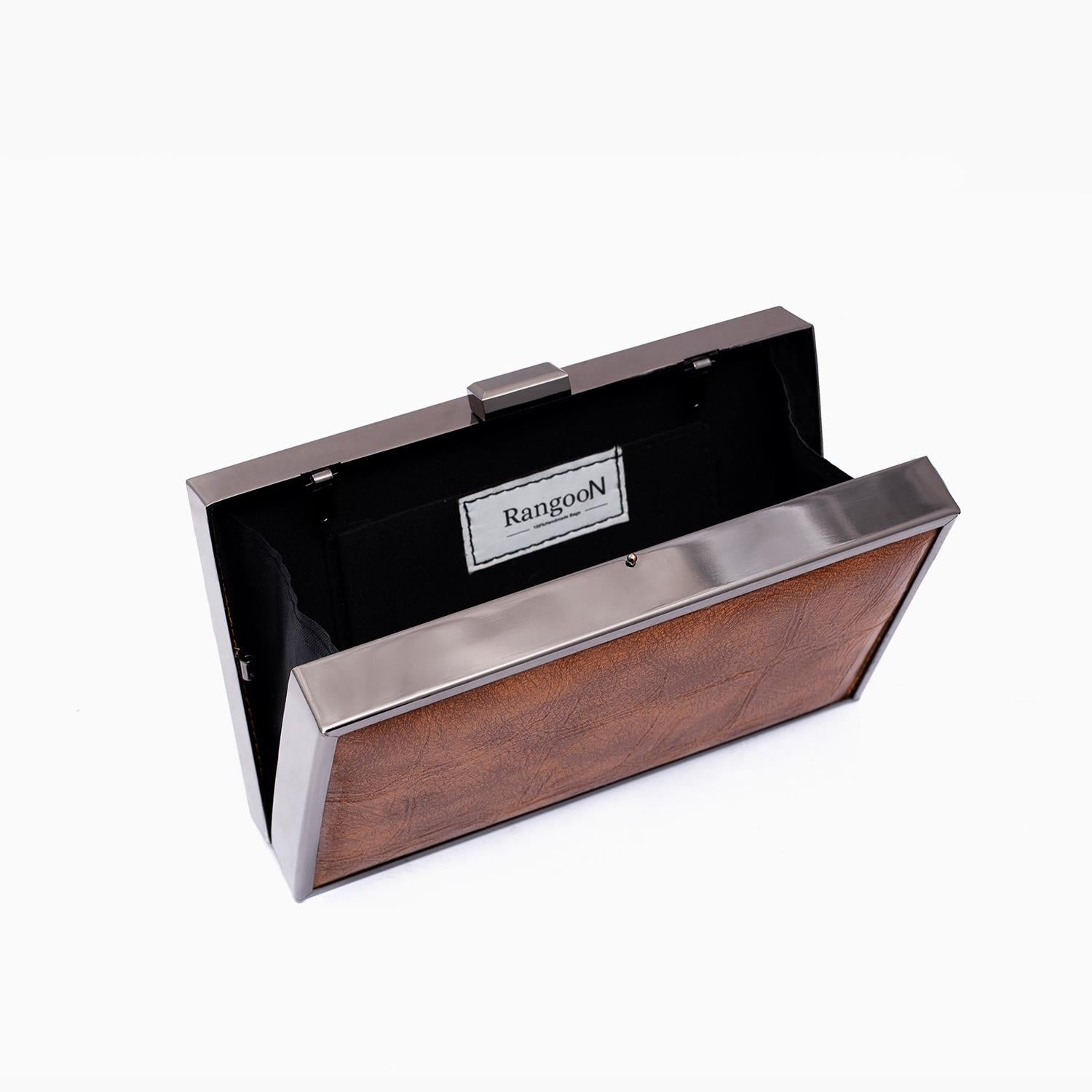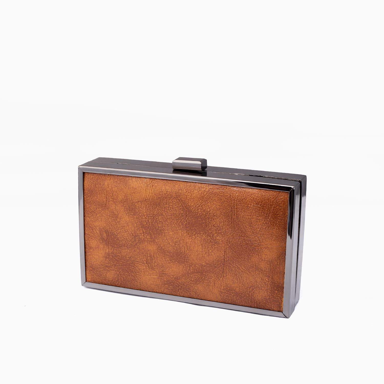 This classy brown and silver box clutch has spacious to store all your essentials, to complete any glam or casual look.