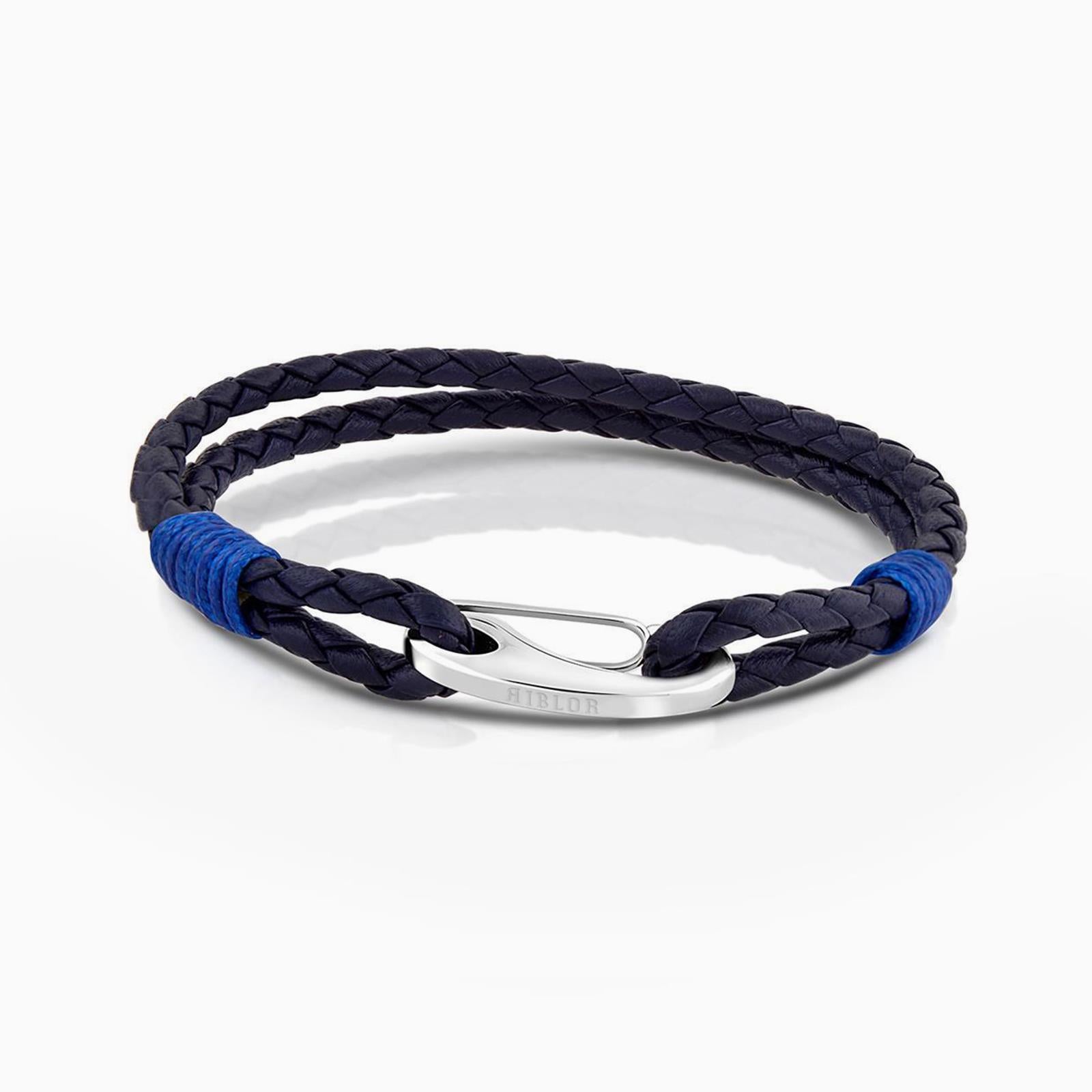 The ultimate, everyday wear bracelet, marvellous detailing and the finest materials make this an easy-to-wear accessory, whether it's to add a hint of personality when wearing a tailored suit or a rebellious touch with casual wear. Handmade from two row navy blue genuine leather and engraved stainless steel adjustable clasp, that ages well.
