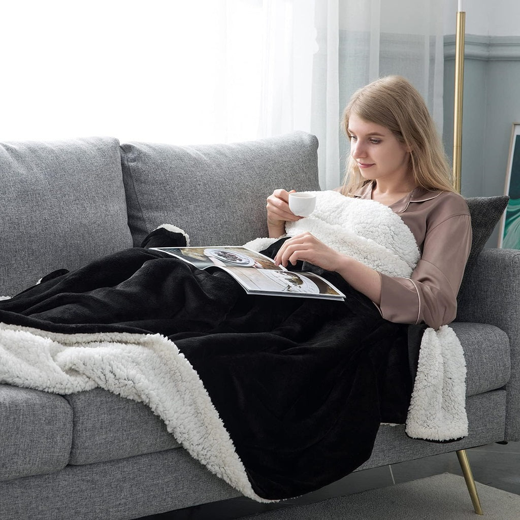 Sherpa fleece blanket is best for warmer nights. The extra warm sherpa blanket gives you good and cozy sleep, making it the perfect winter blanket. Made from fleece. It's super comfy, super soft, and super easy to clean. It is perfect for many occasions such as at home, on the couch, on a plane, or while traveling.