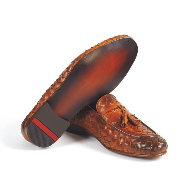 A true testament to the hard work of our craftsmen, this step in Spadera loafer is made from two shades of brown top grained leather, braided together and then crowned with a classic brown tassel.