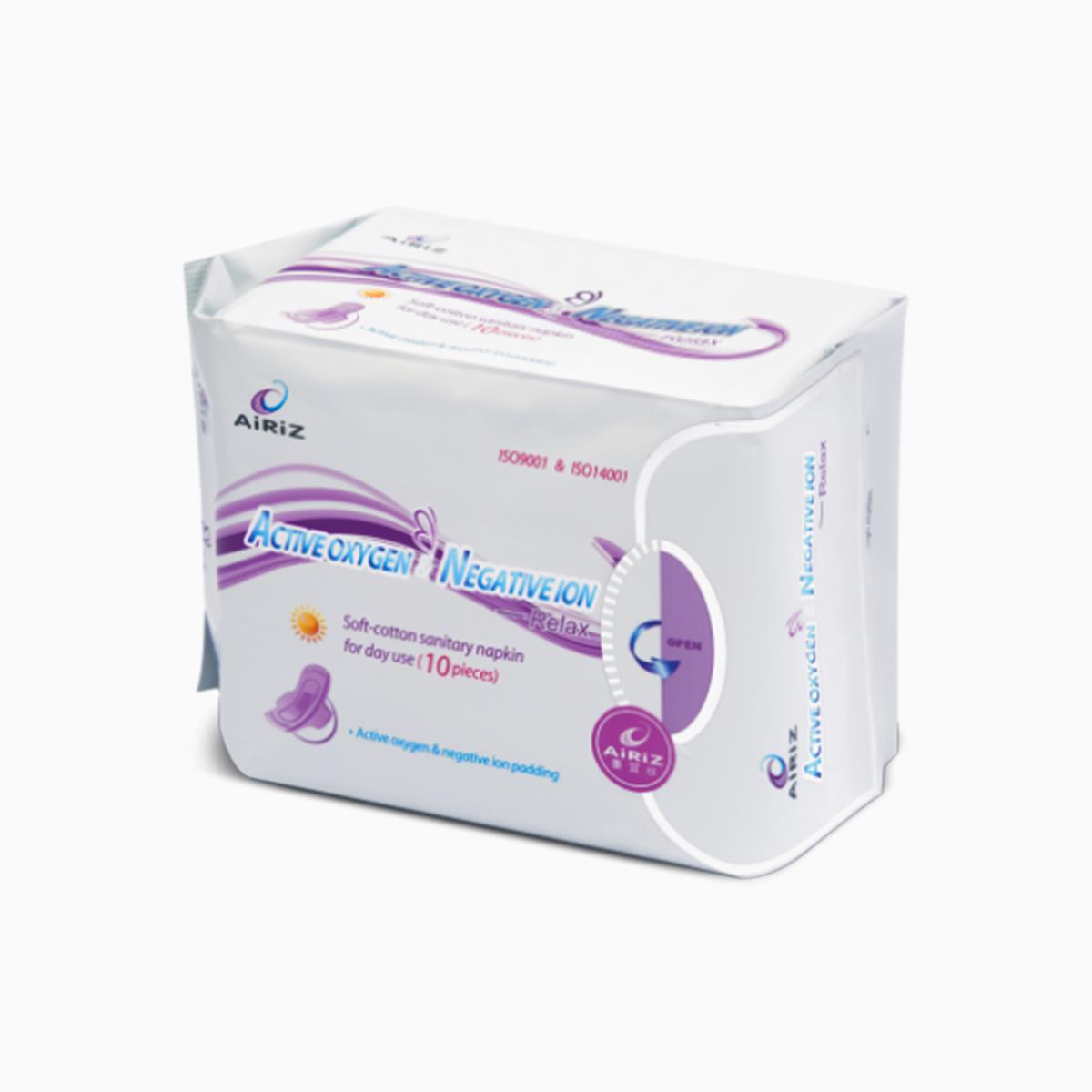 It is suggested that sanitary towels with cotton surfaces are preferable because they’re more absorbent and comfortable. Scented towels or synthetic material should be avoided. Towels should be replaced regularly during periods to help prevent bacterial growth. AIRIZ Oxygen and Negative Ion sanitary towels combine active oxygen and anion to help prevent harmful bacteria and protect helpful bacteria. The towels contain no drugs or chemical composition.