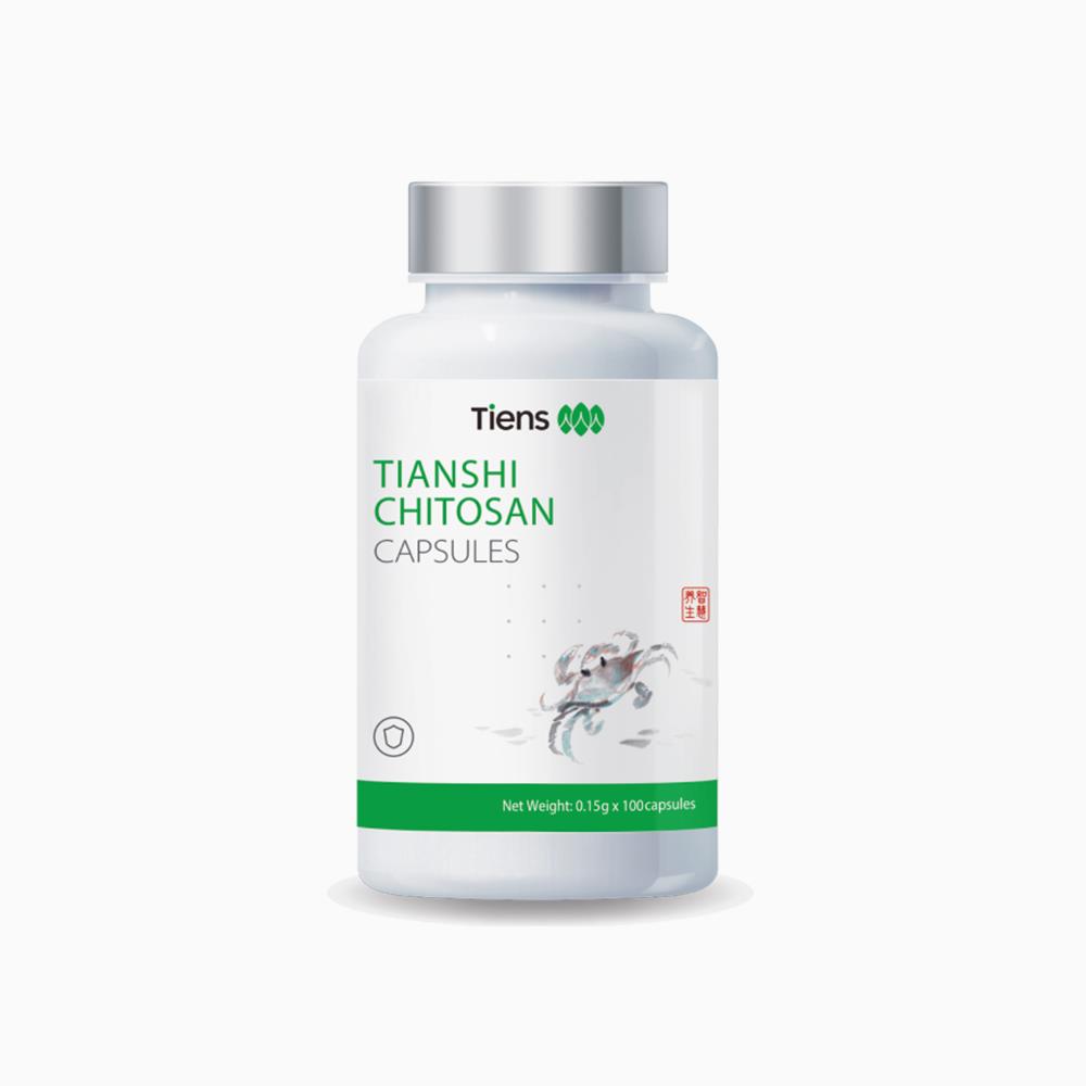 The effective ingredient of Tiens Chitosan capsule is chitosan and every capsule contains no less than 144mg of deacetylation. It an anti ageing product that acts at the cellular level of the human body, repairing and reinvigorating the system by: