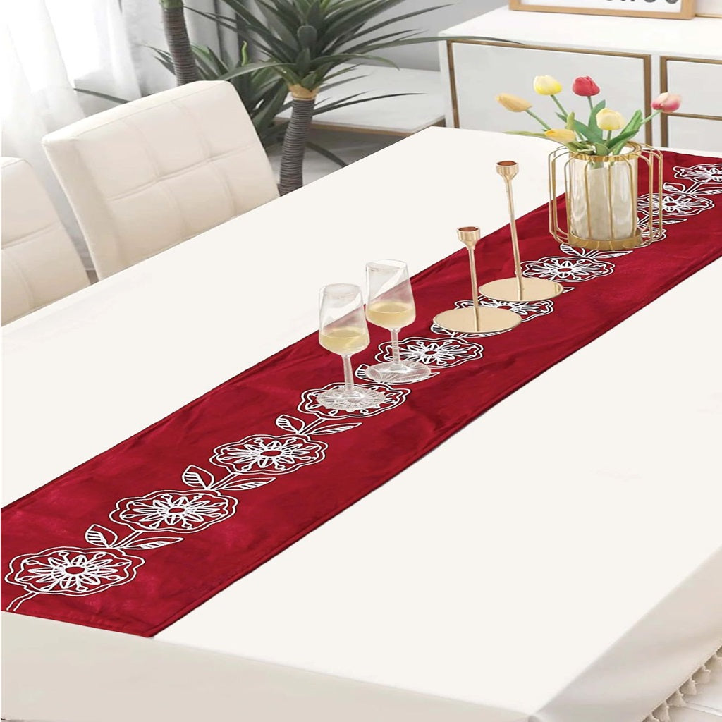 White Flower 1 Pcs Embroidered Table Runner Maroon