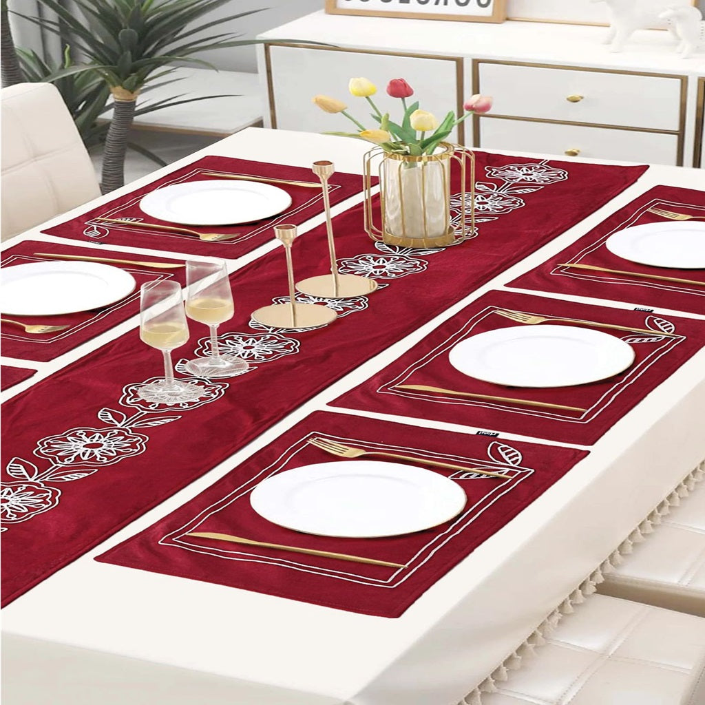 7 Pcs Embroidered Table Runner Set Red
